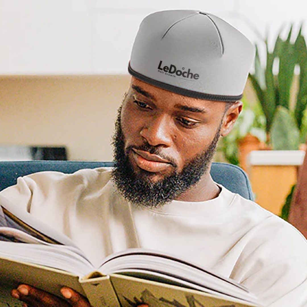 The LeDoche Hat is designed with your lifestyle in mind. Offering a hands-free, comfortable fit, it allows you to indulge in your favorite pastimes—be it watching Netflix or getting lost in a book—all while the hat gently works to support your hair's vitality. Its lightweight, unobtrusive design ensures maximum comfort during each use.